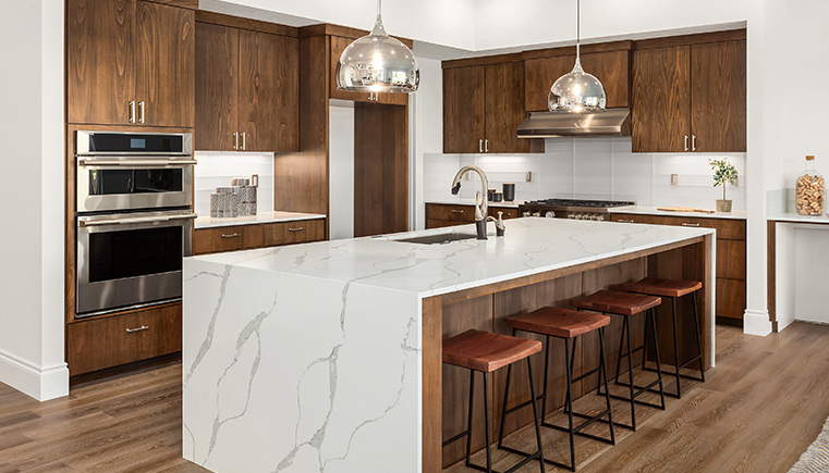 Open kitchens help create the illusion of more space in modest sized homes. It also lets you entertain guests, talk to the family or even catch up on TV shows while handling kitchen duties.